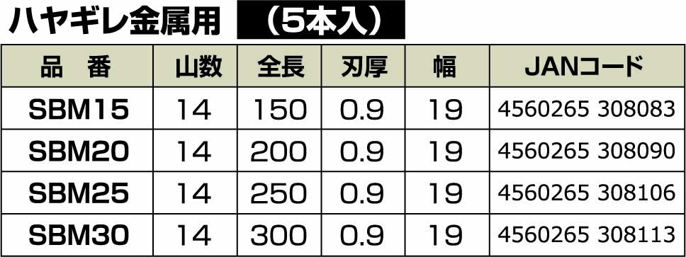 SBM15 | 150×0.9×19 | 4560265308083 | 5本入 |