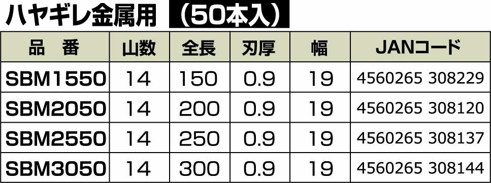 SBM3050 | 300×0.9×19 | 4560265308144 | 50本入 |